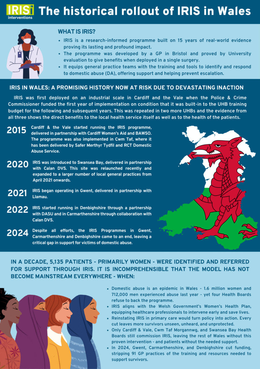 The call to Welsh Government for action is clear: reinstate IRIS in every health board and expand it to fully cover every practice in every part of Wales. Make it the national standard it was always meant to be. And embed it fully into the Women’s Health Strategy, not as an afterthought, but as a cornerstone of prevention.